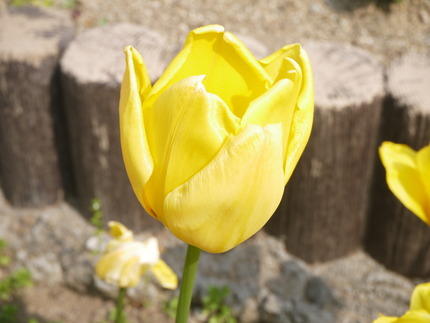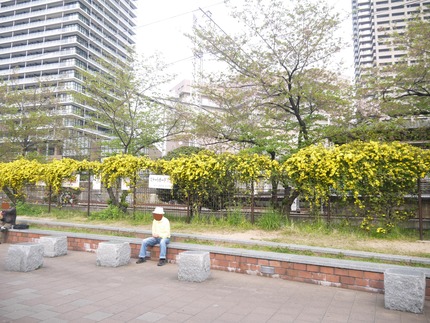 3月末に記事にした、線路沿いにある桜の木は葉桜になってしまいましたが、下に黄色い花が咲いていましたよ。