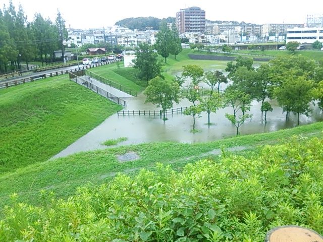 緑地の東側にある池が水没し、緑地の中央に架かる橋も渡れなくなっていたとのことでした。
