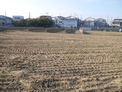 萱島信和町の線路沿いにある田んぼで、稲刈りが終了していました!