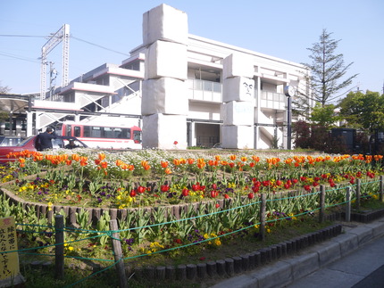 香里園駅西口ロータリーに、綺麗なチューリップの花が咲いていました。
