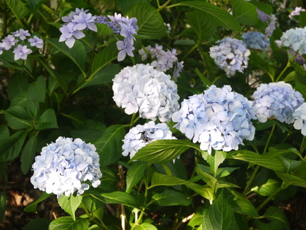 この日(6月20日)は珍しく晴れていたので、梅雨の花・アジサイにとっては悪条件だったようです。(アジサイは曇りや雨の日の方が元気の出る植物です。少しピークを過ぎてしまっているのもあるかも…。)