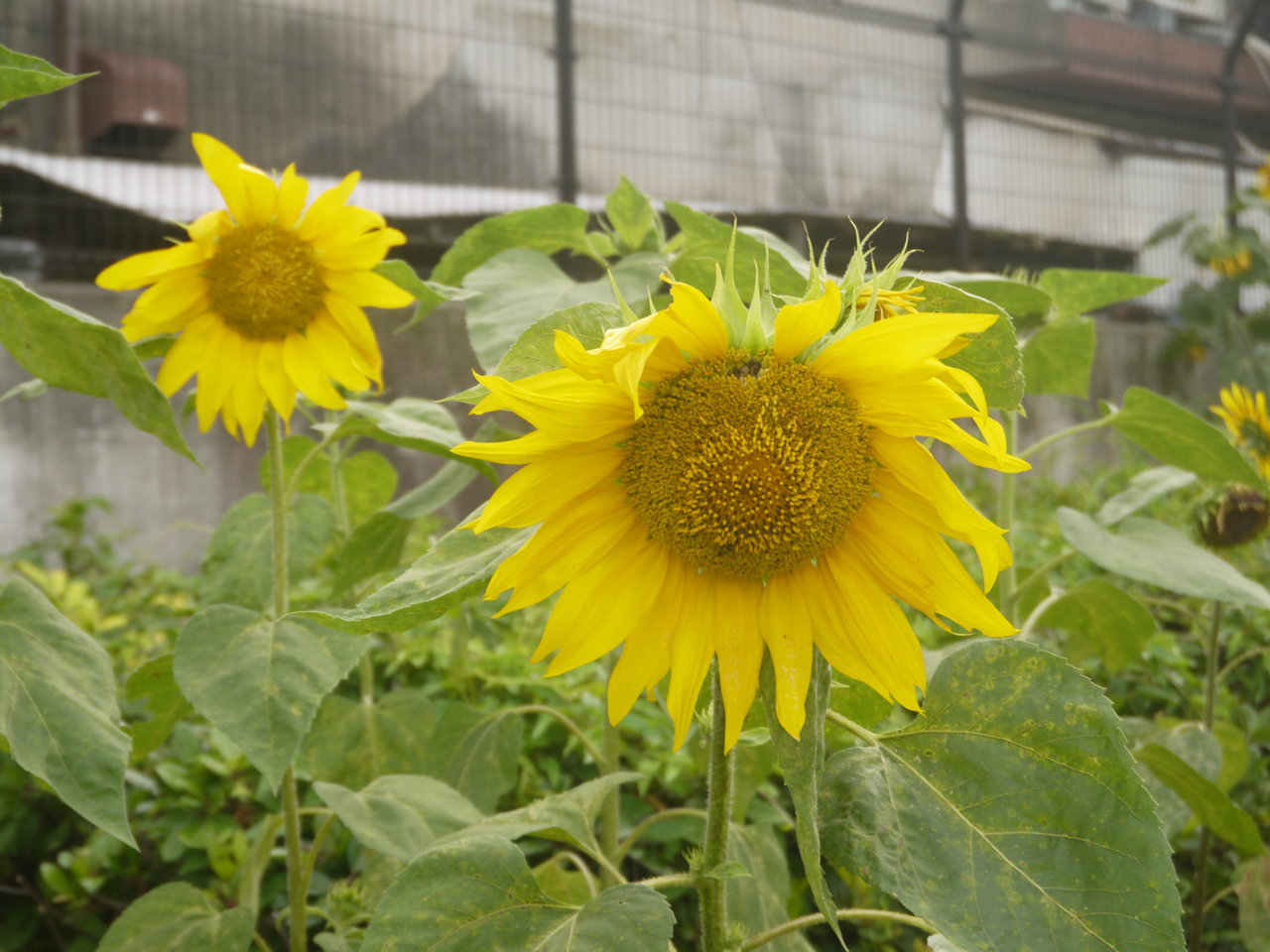 大利公園(はなみずき公園)に、たくさんの向日葵の花が咲いていました。