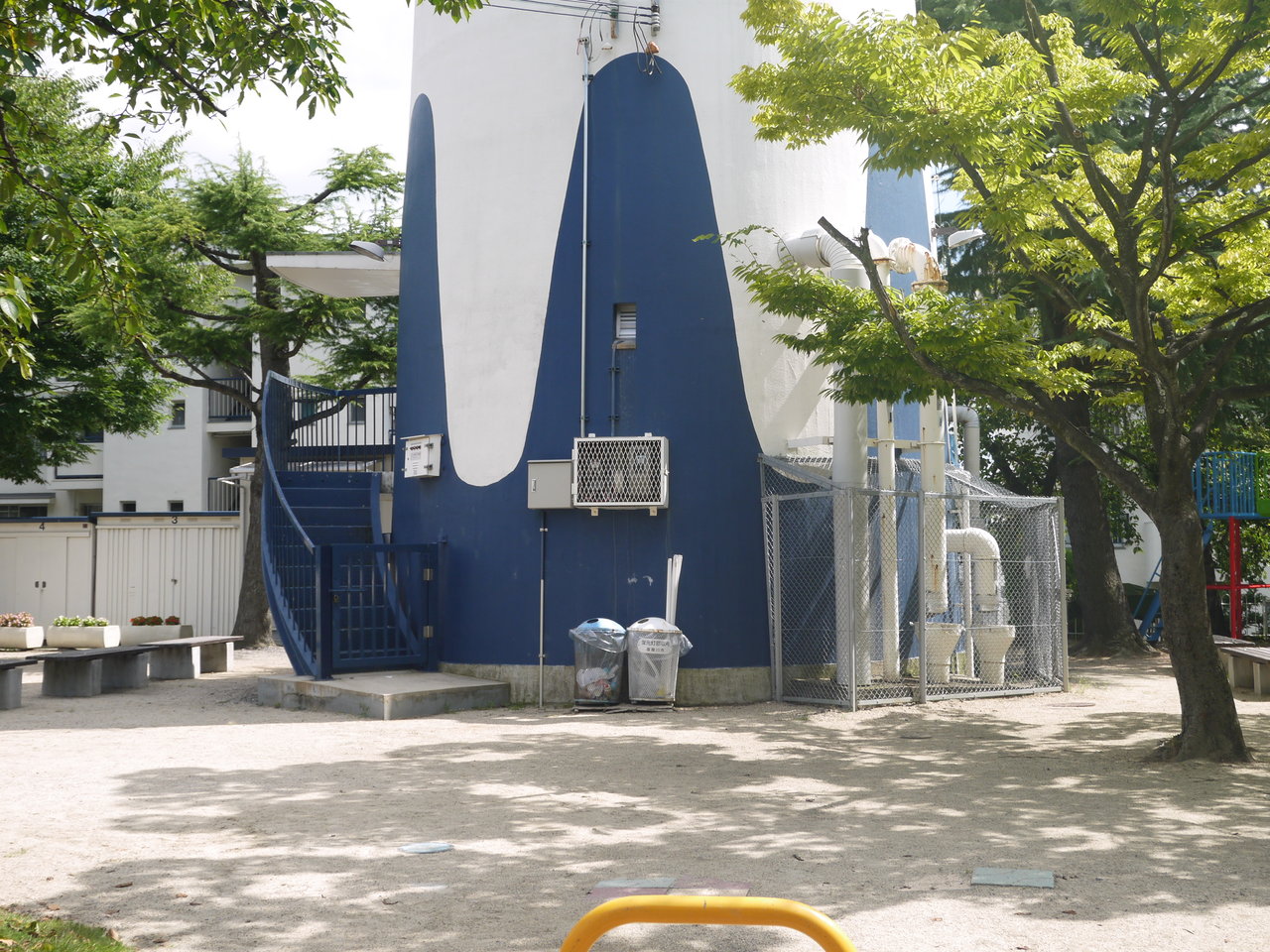 三井団地にある白と青色に塗装された塔を撮影してみました!