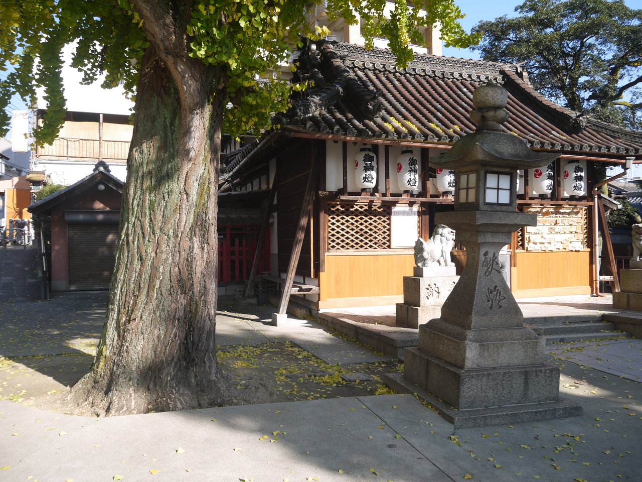 寒くなり紅葉のシーズンも終わりを迎えようとしていますが、木田町の住吉神社(ねや川戎)にある大きなイチョウの木がちょうど黄色く染まっていました!