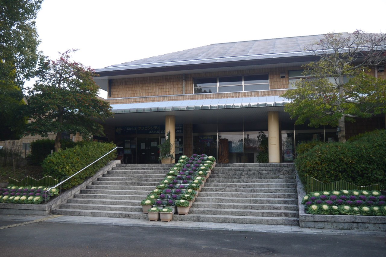 お正月を迎えた大阪府営寝屋川公園の管理事務所前で、綺麗なハボタンが植えられています。