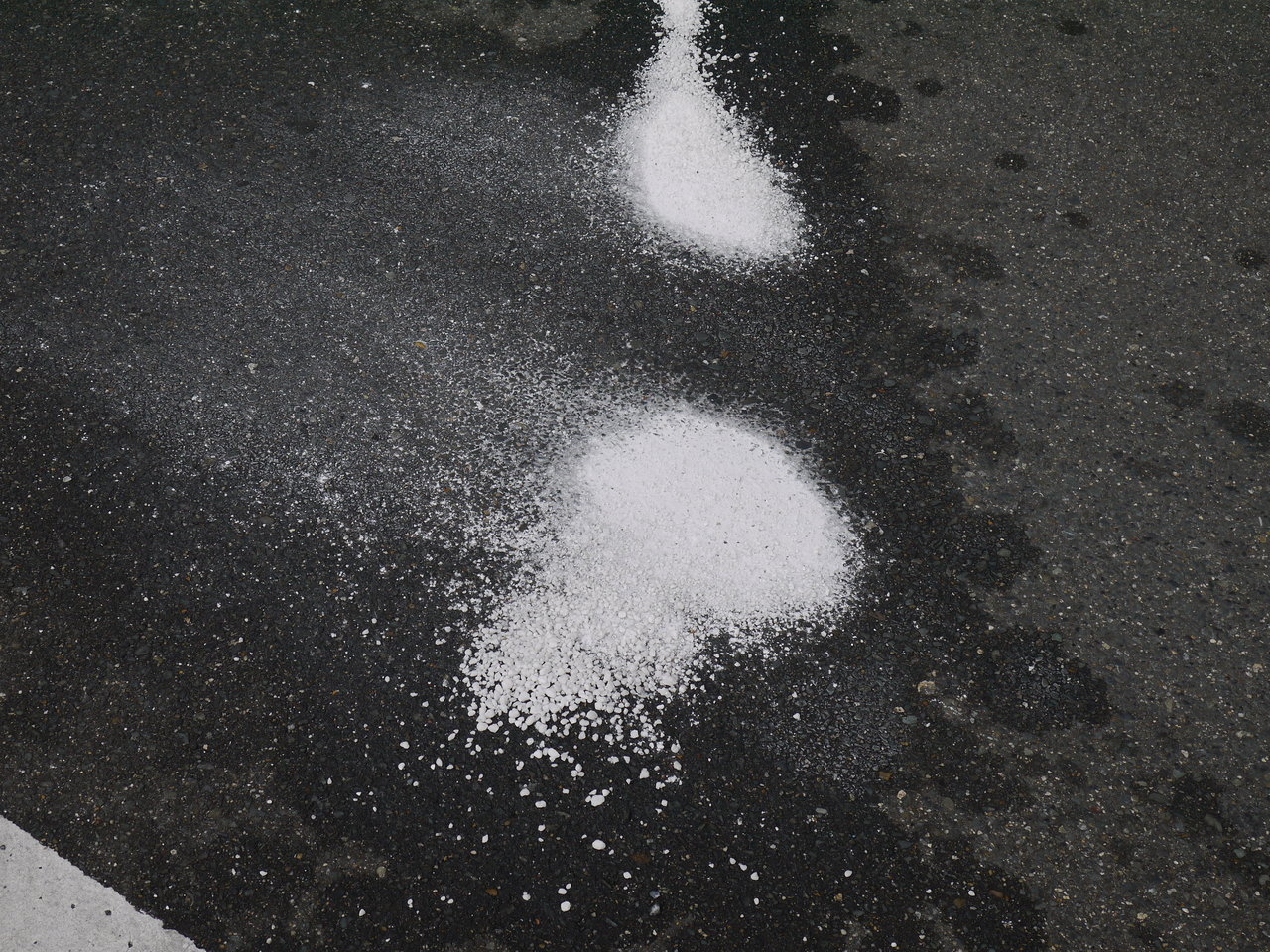 道路脇に袋が積まれた状態はよく目にするのですが、実際にまかれているのは初めて見ました。(あまり使用しすぎると、鉄製の橋が錆びる原因にもなるらしいです。)
