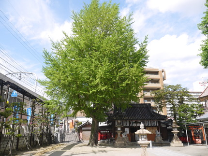 本殿の左側に生えているイチョウの木(高さ15.7m、幹回り2.47m)は、寝屋川市の保存樹に指定されていて、樹齢はなんと!270年!(2007年時点の情報)