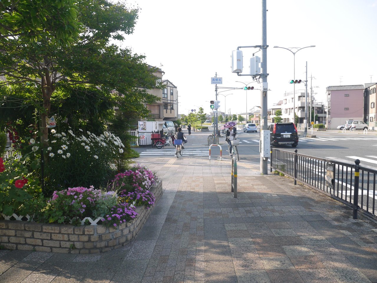 場所は高柳4丁目交差点の南側(第九中学校の北西)で、歩道の広い植え込みに色々な花が植えられているようです。