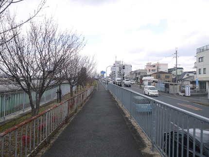 河津桜は国道170号線と南前川の間の土手に植えられていて、ピンク色の花が特徴です。