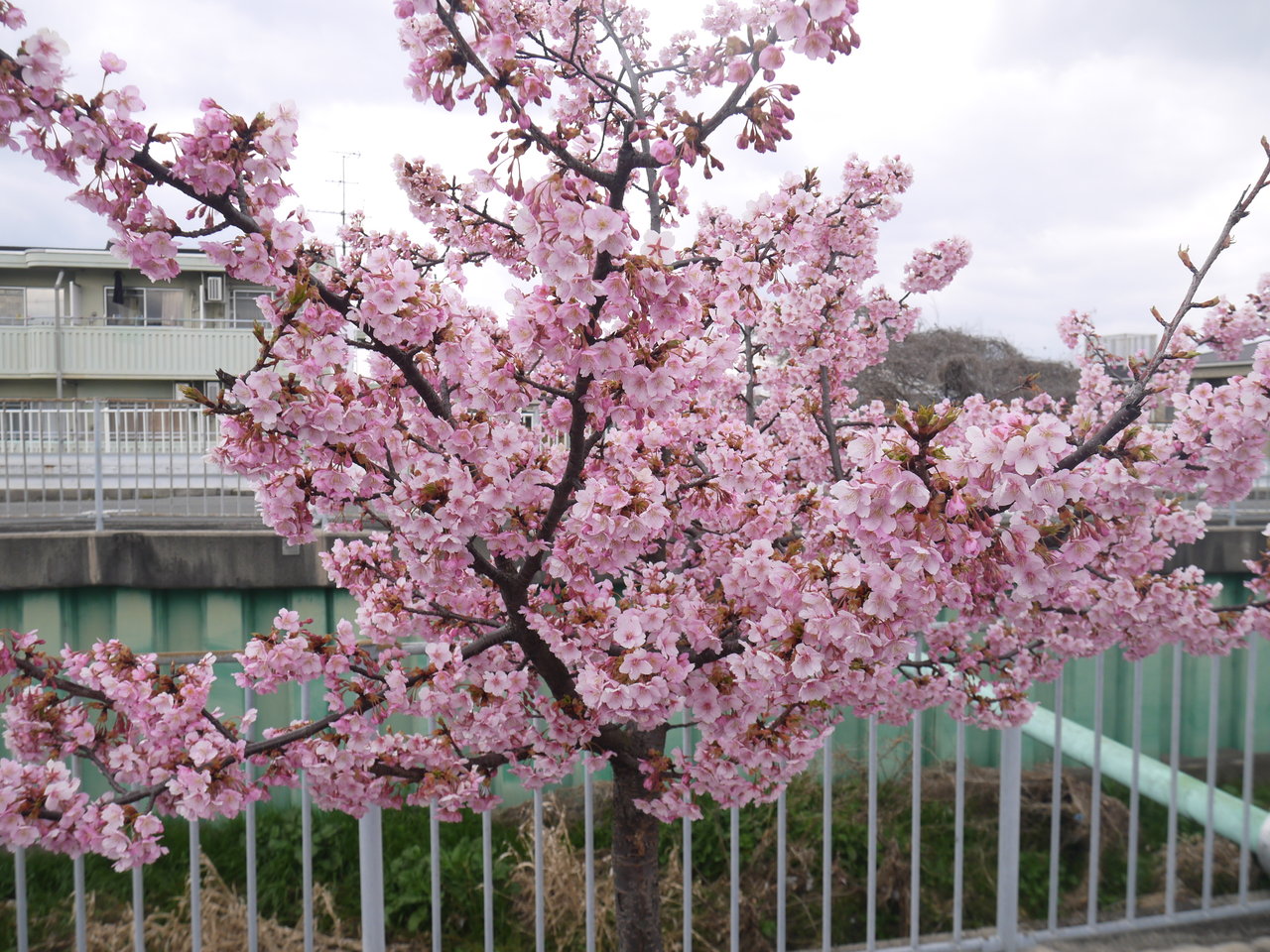 国道170号線(外環状線)の国松北口~成田山境橋口交差点間にある早咲きの河津桜が、綺麗に開花していました。