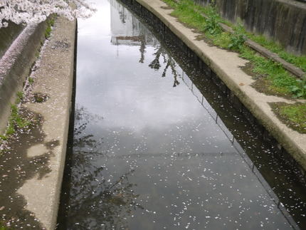 門真市との境界を流れる川沿いに130本の桜の木が植えられています。