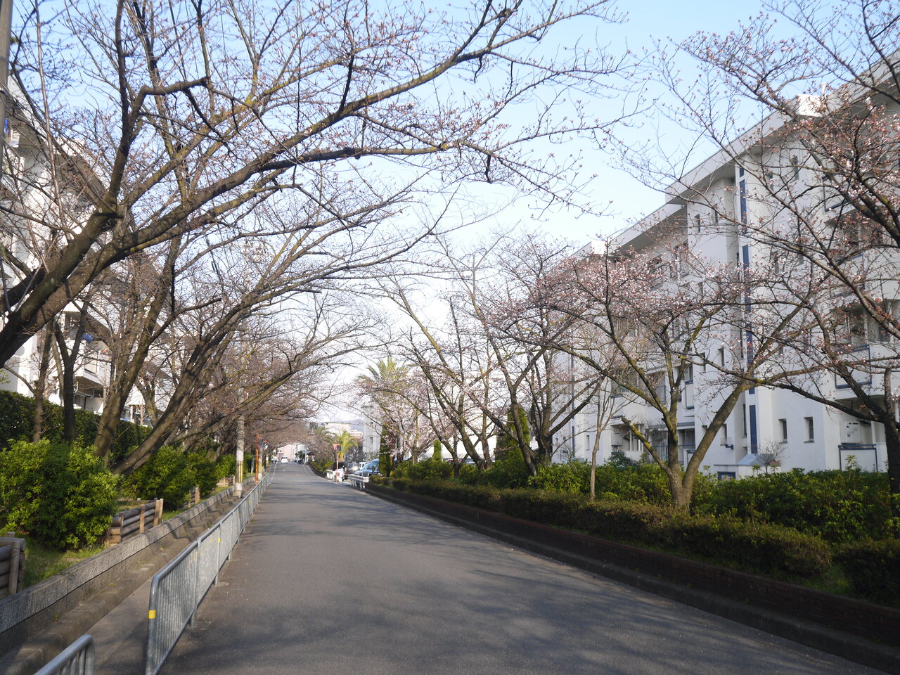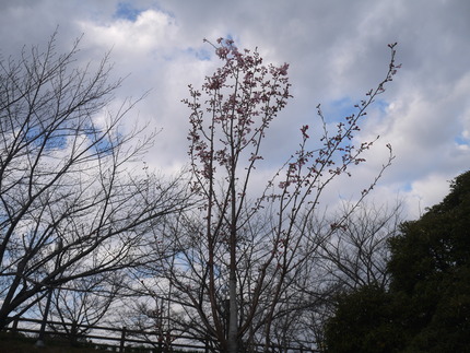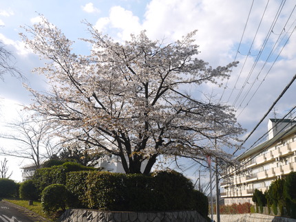 三井団地バス停~三井小学校の桜の木は、まだ咲き始めの段階です。