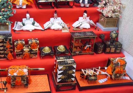 寝屋川市駅西口のベル大利商店街に、今年もひな人形が飾られたひな壇がお目見えしています。