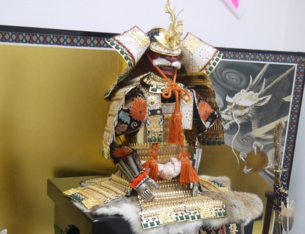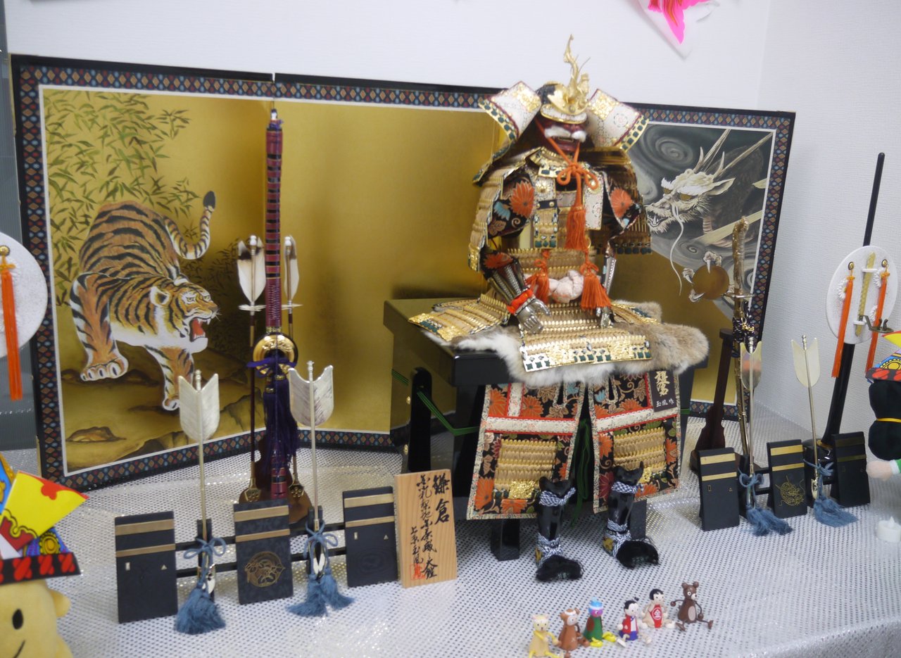商店街のマスコットキャラクターの「ベルちゃん」と「としちゃん」も子供の日らしく兜をかぶっていましたよ。