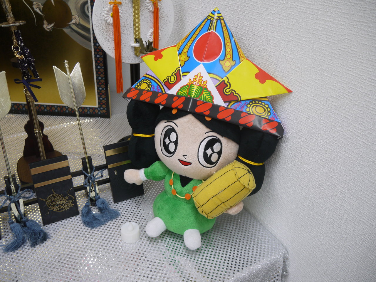 場所は商店街の中ほどにある「ふれあいステーション」の中で、このような飾り付けはハロウィンや節分の時にもお馴染みです。