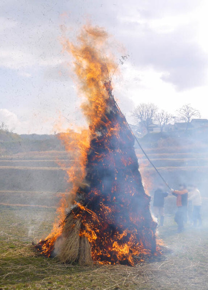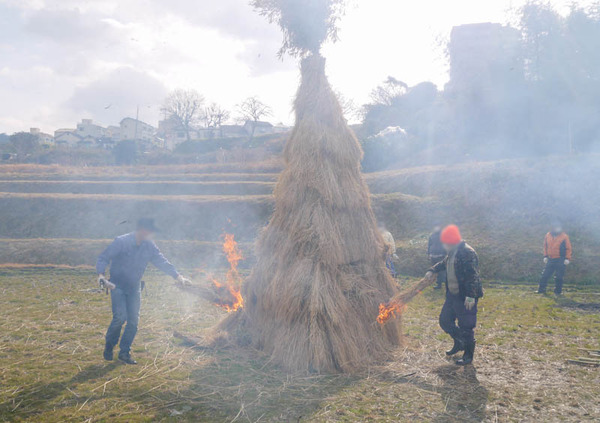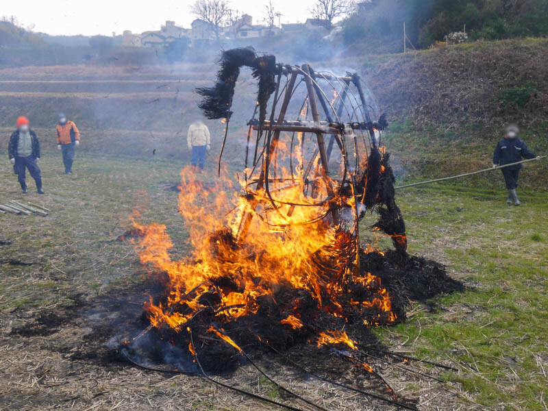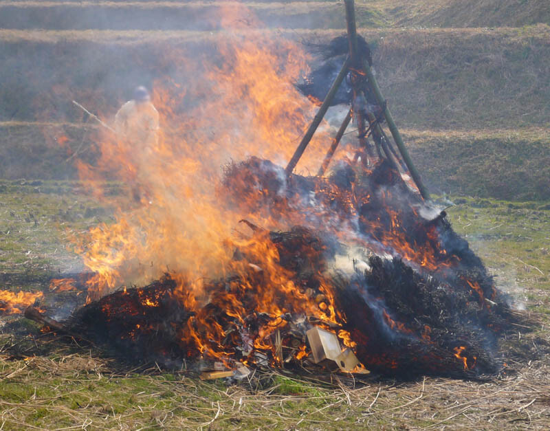 今年の「高倉とんど焼き」は新型コロナウイルス感染拡大の影響により非公開で行われましたが、「関係者のみで燃やすのはもったいない!」と思ってお願いし、特別に見せていただいた形です。