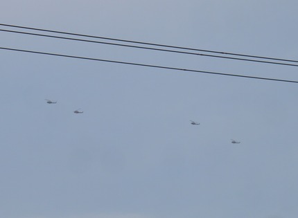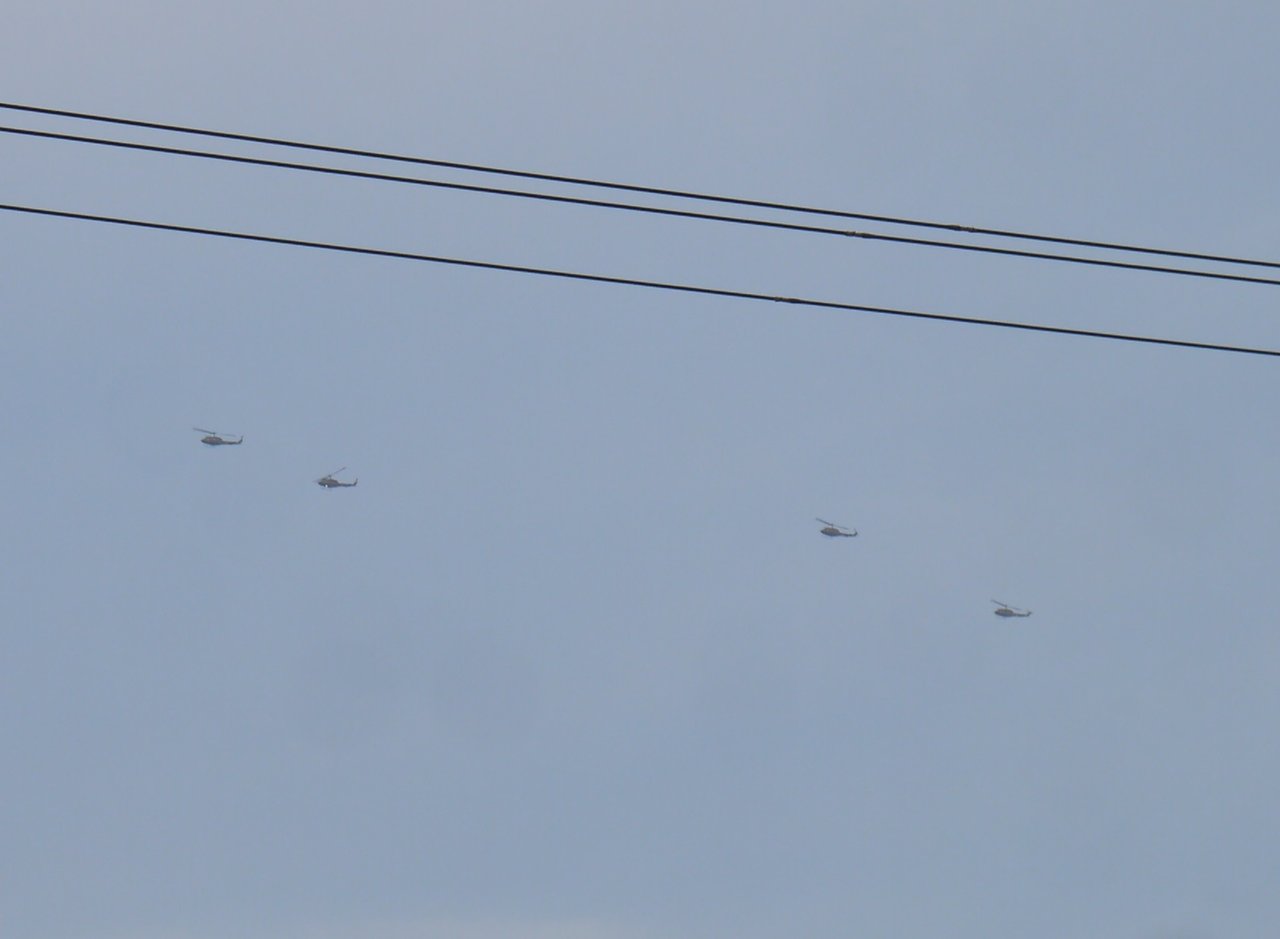 7月にも東神田町でヘリが編隊を組んで飛んでいる姿を目撃しましたが、北方向へと飛んで行ったのはその時と同じです。