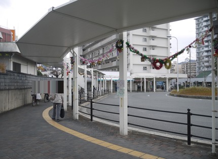 飾り付けがされているのは、バスロータリーの屋根の部分です。