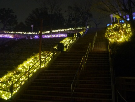 ここまで来ると、高いところから園内のイルミネーションを見渡せます。