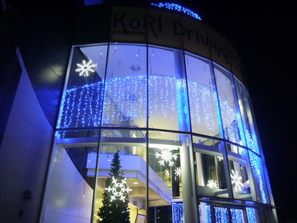国道170号線に面した校舎の正面玄関やそばの木、教習コースのフェンスに様々な電飾が設置され、幻想的な雰囲気になっています。