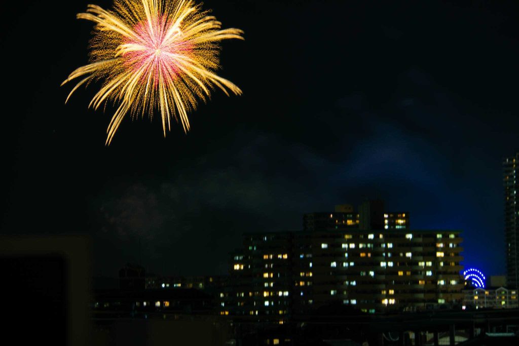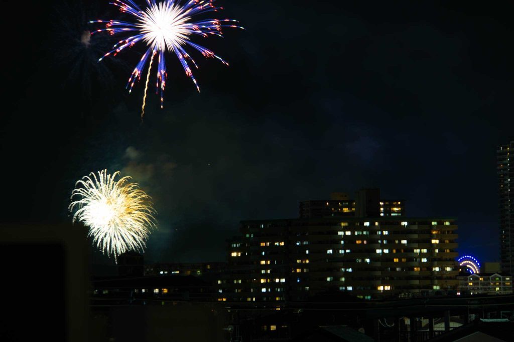 圧巻のフィナーレ。他の建物から見ている人たちもたくさんいてて、花火が終わってから、手を振ったら振り返してくれました。めっちゃハッピー空間。笑