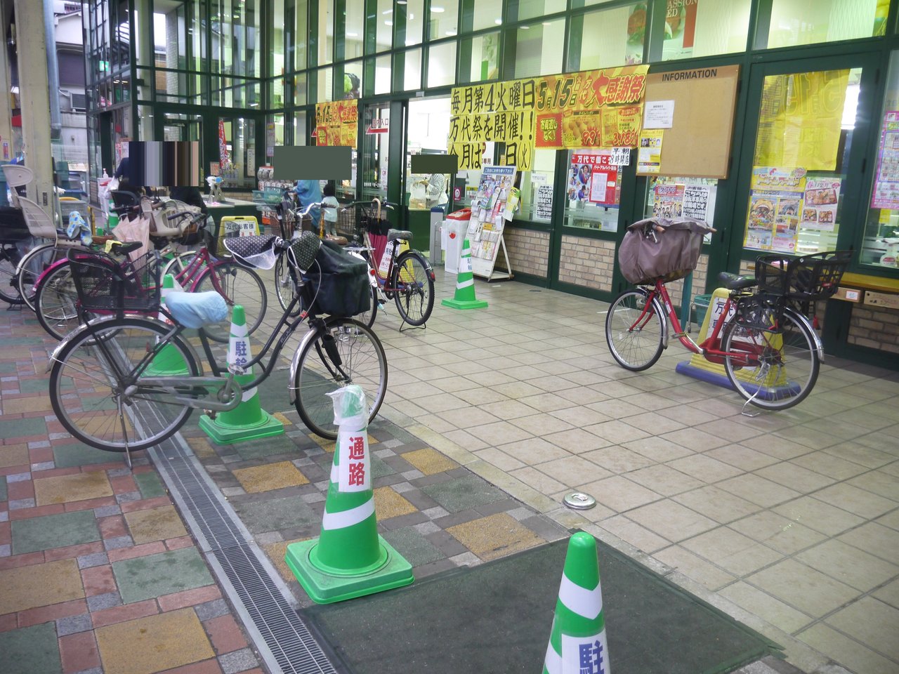 強い雨の天気となった5月13日(日)にベル大利商店街を通りかかると、万代寝屋川店の駐輪場がガランとしていました。