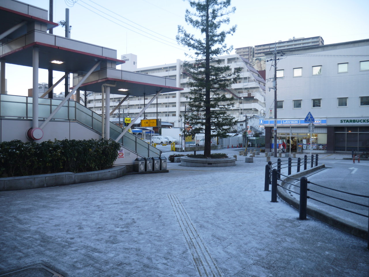 日本列島の上空を覆う強い寒気の影響で寝屋川市でも昨夜から雪が降り始め、香里園駅前が白くなっていました。