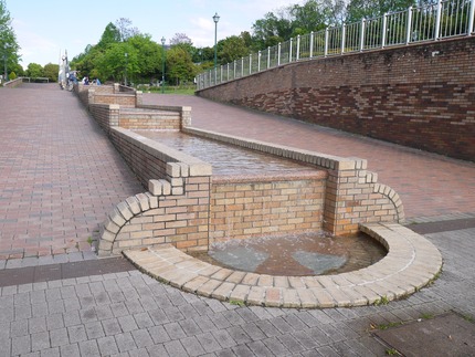 中央広場の真ん中にある噴水も昨日から稼働を始めました。(稼働時間は毎時15分程度。)