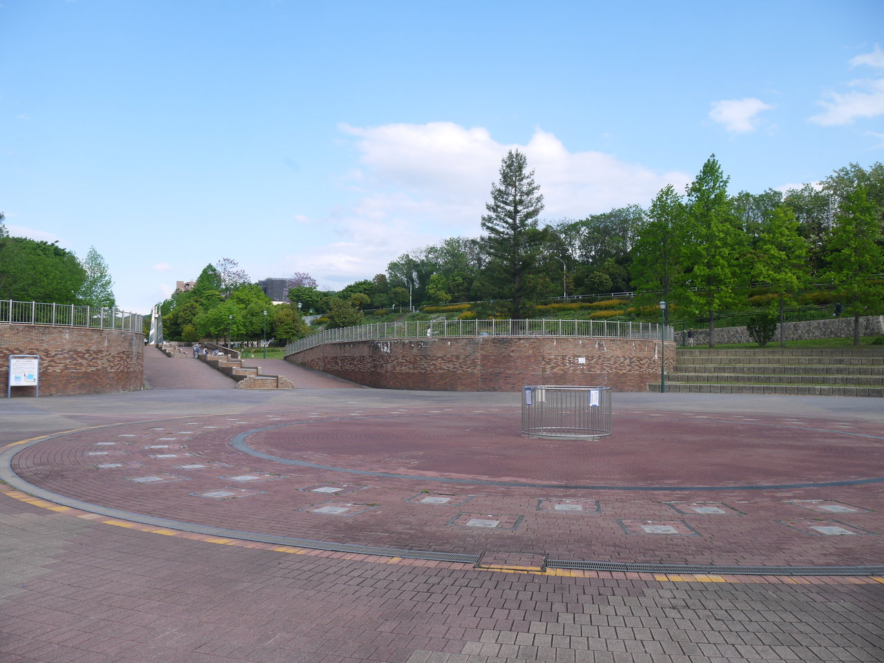 最後にご覧いただくのは、月観橋前の大きな階段を上がったところにある芝生広場の様子です。