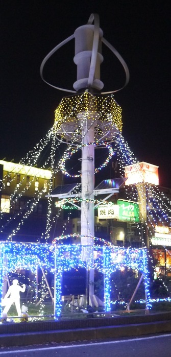 最もアクセントになっているのは、「ダリウス・サポニウス型風車」と呼ばれる発電装置の支柱に飾られたイルミネーションです。