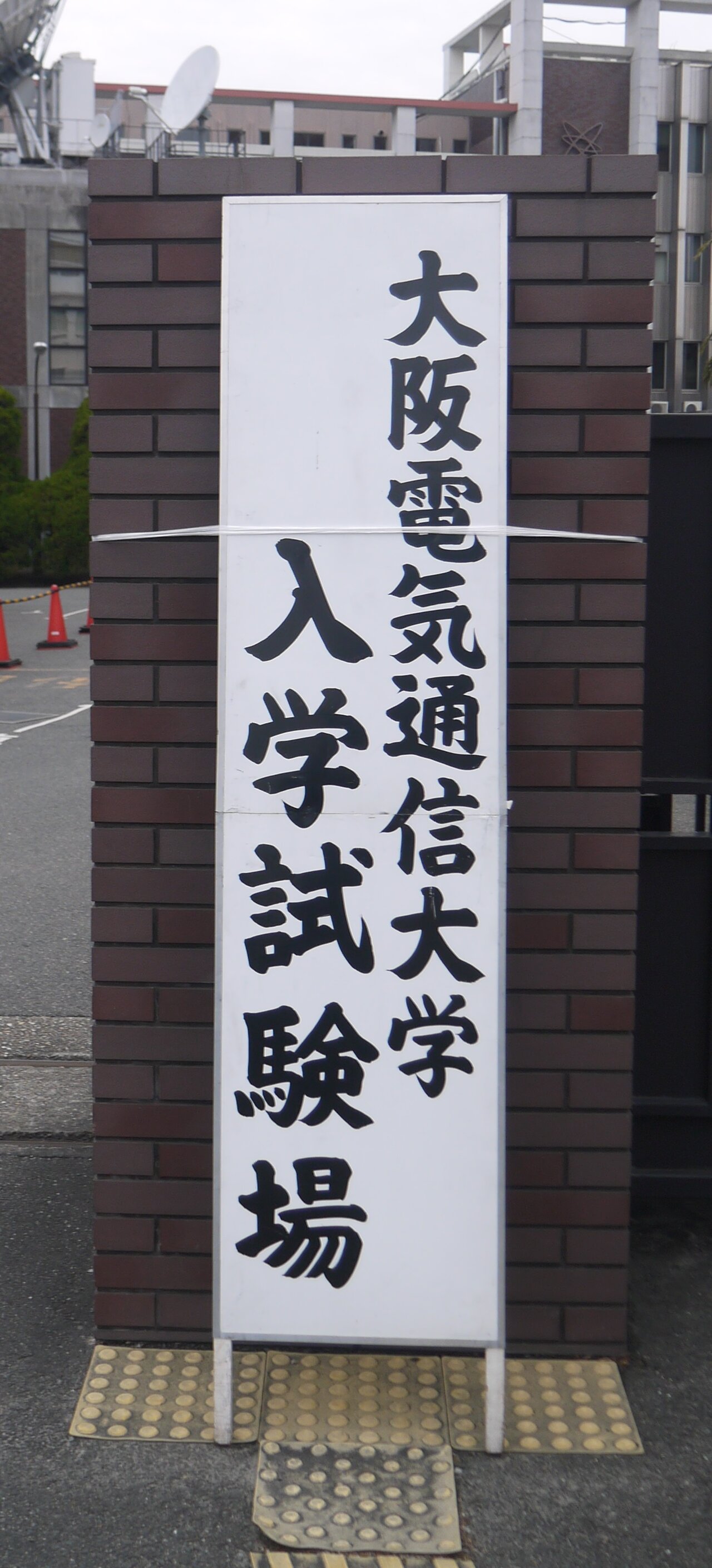 大阪電気通信大学寝屋川キャンパス(初町)の前を3月1日(日)に通ると、入学試験が行われていました。