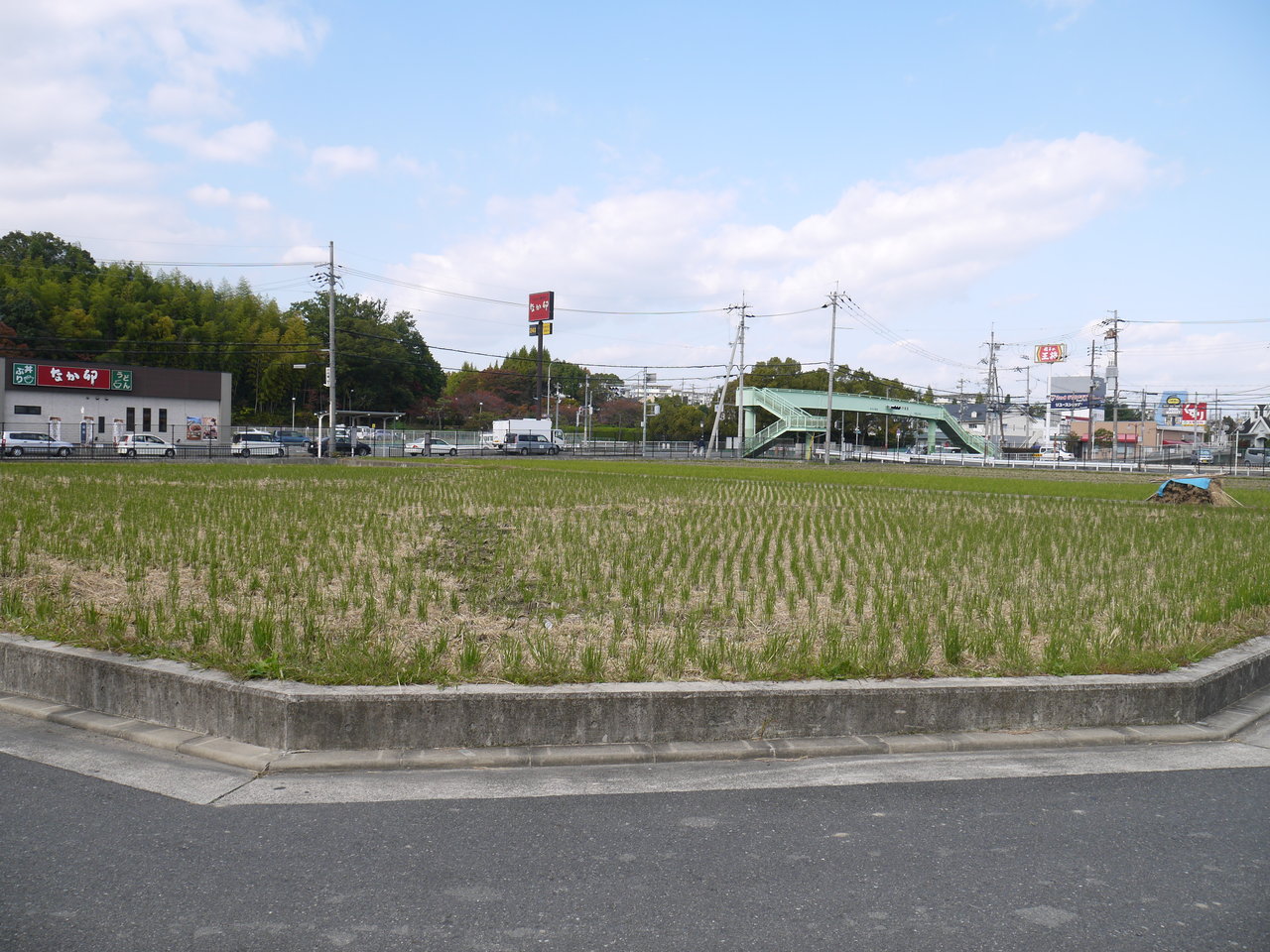 場所は府道18号枚方交野寝屋川線沿い(寝屋交差点の近く)にある田んぼで、道路沿いから見ると田植えが行われたばかりのような光景となっています。