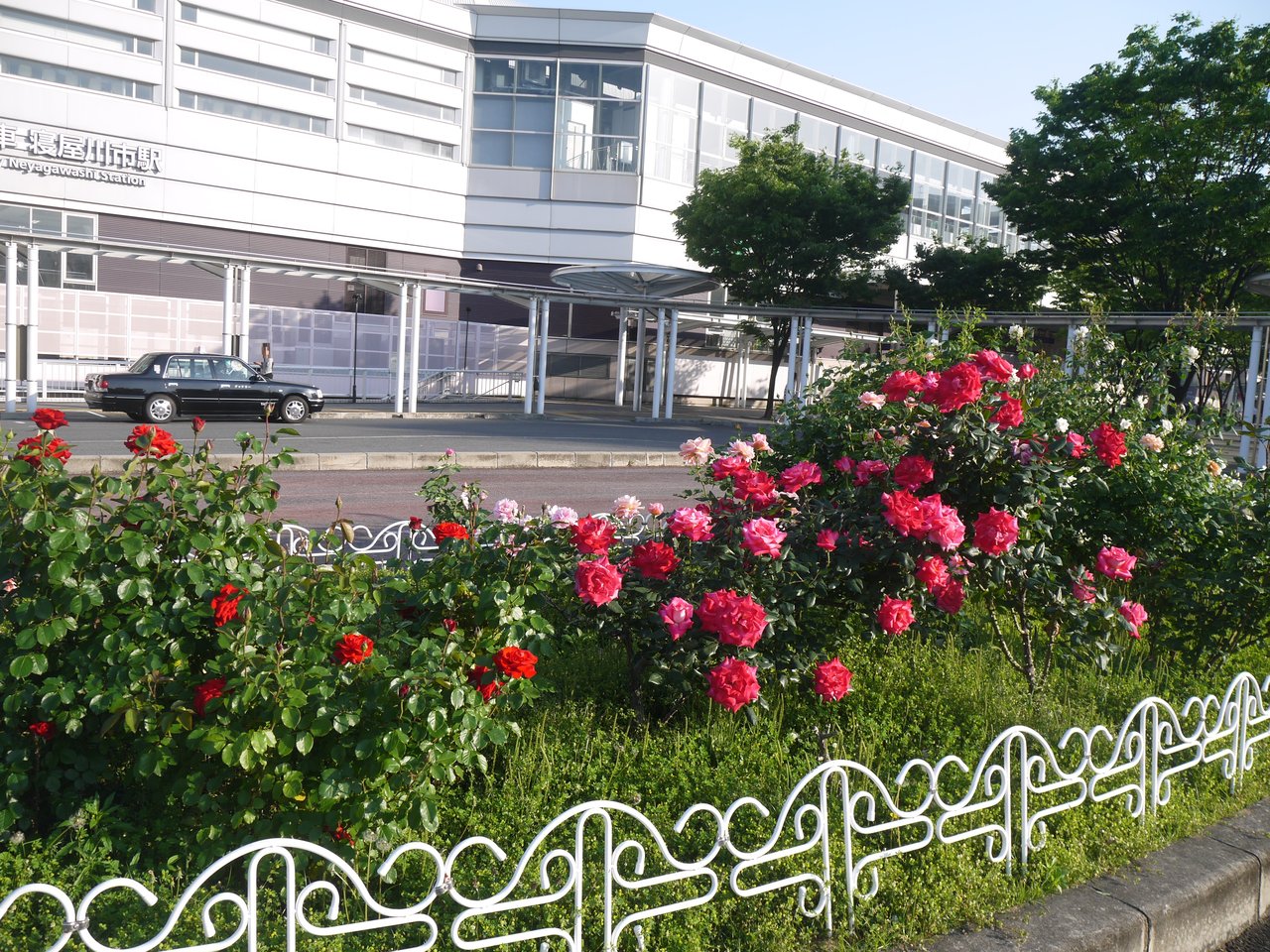 寝屋川市駅西口のタクシーロータリー付近で薔薇の花が見ごろを迎えています。