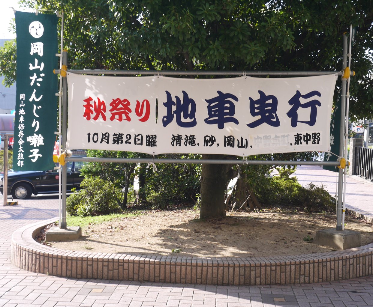 ロータリーの真ん中に「これでもか!」と言わんばかりの大量の旗です。