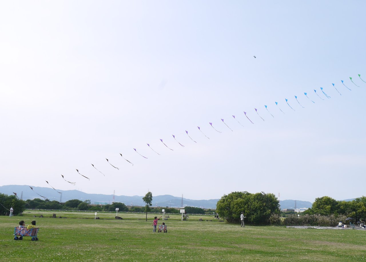 ゴールデンウィークなどの連休でも凧揚げをしている人の姿は見られましたが、ここまで長いのはなかったです。