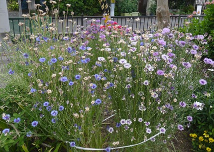 高柳4丁目(寝屋川市西部)の府道を通りかかると、花壇に綺麗な花が咲いているのを見つけました。