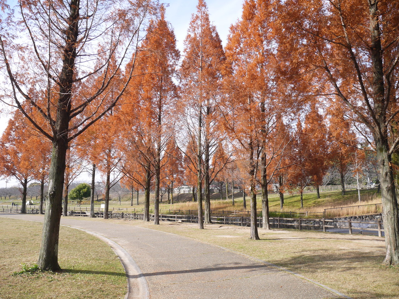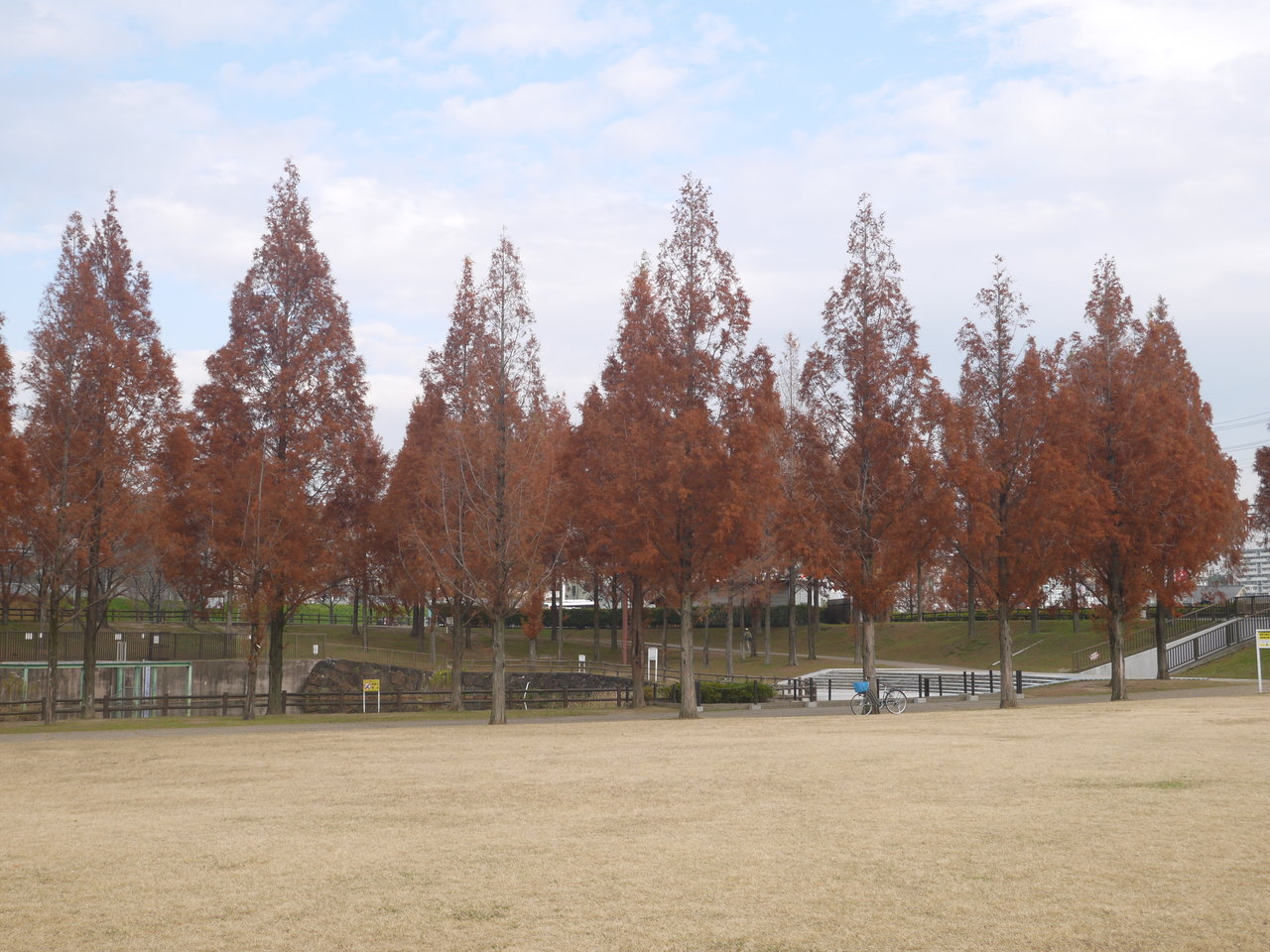 紅葉のシーズンも間もなく終わりを迎えようとしていますが、打上川治水緑地では大きなメタセコイアの木が茶色く色づき、綺麗な光景になっています!