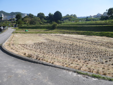 梅が丘2丁目(東寝屋川方面)の田んぼで、稲刈りが終わった状態になっていました。