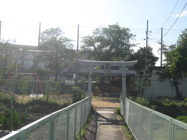狭い路地(農道?)の向こう側に葛原天満宮はあります。後ろに見えているのは大阪府立西寝屋川高校です。「ちょうど西寝屋川高校のプール横」と言えば、西寝屋川高校卒の方はピンとくるでしょうか。