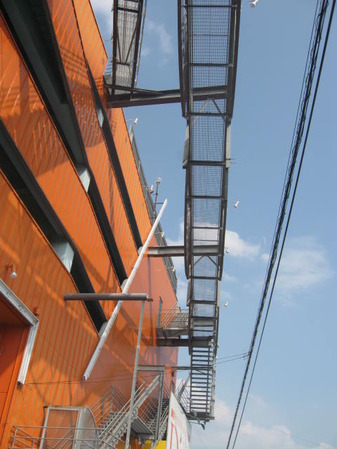 ちなみにこの避難通路、地上部分は施錠されていません。途中の部分にも建物に入る非常扉以外バリケードはないので、その気になれば上まで簡単に上がることができるのです!