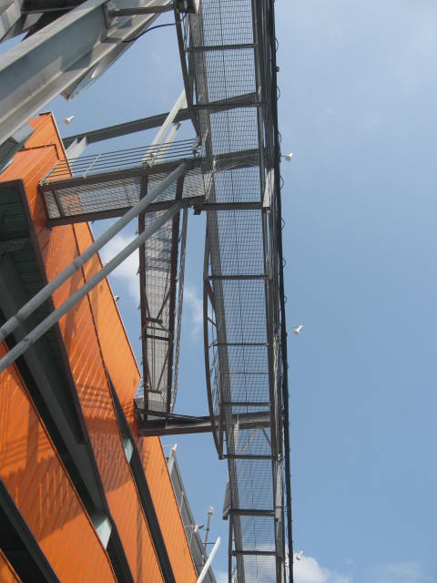 デザイン性を考えてこのような構造になっているのだとしたら、かなりの高等テクニックですよね~。(デザインの善し悪しは置いておいて、避難通路って、けっこう無機質になりがちなので。)