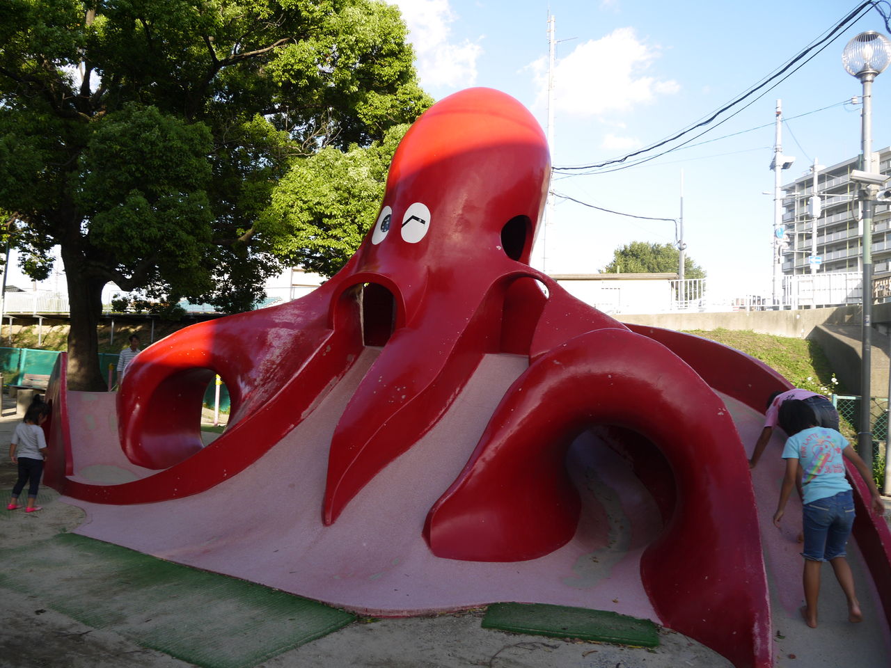 この公園の目玉はやっぱり名称の由来にもなった、このタコの滑り台でしょう!