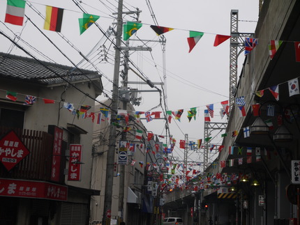 万国旗だらけの光景です。萱島人にとっては当たり前の光景かもしれませんが、実は珍しい光景なのではないでしょうか。