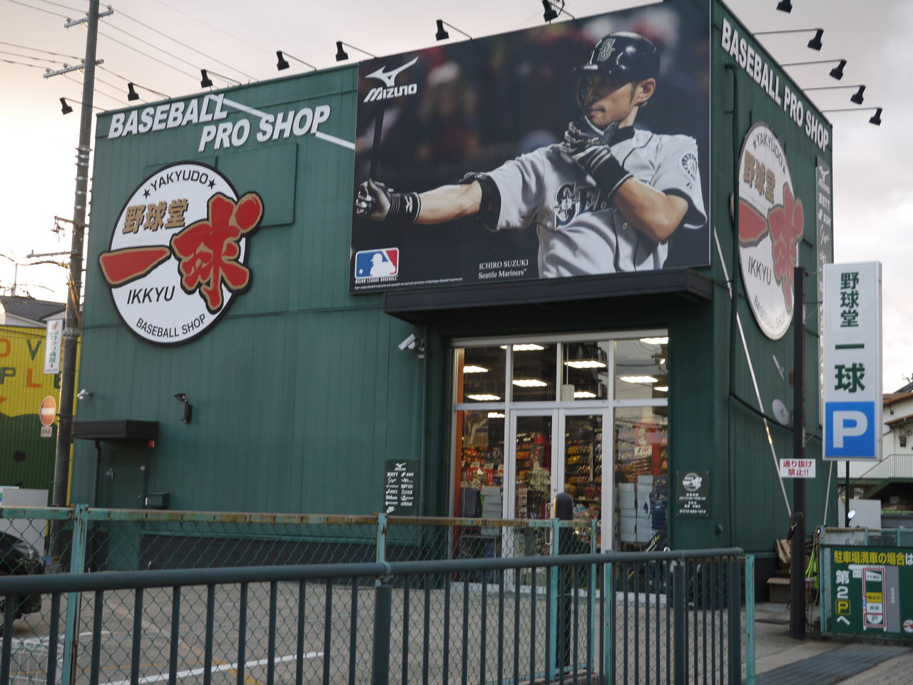 野球選手の象徴として、メジャーリーガーのイチロー選手がお店の看板になっているのだと思います。もしこの看板がなかったら、平凡な緑色の建物になるのではないでしょうか。それぐらい強いインパクトを与えています。(「野球堂 一球」の看板も野球愛が感じられて、なかなか個性的です。)