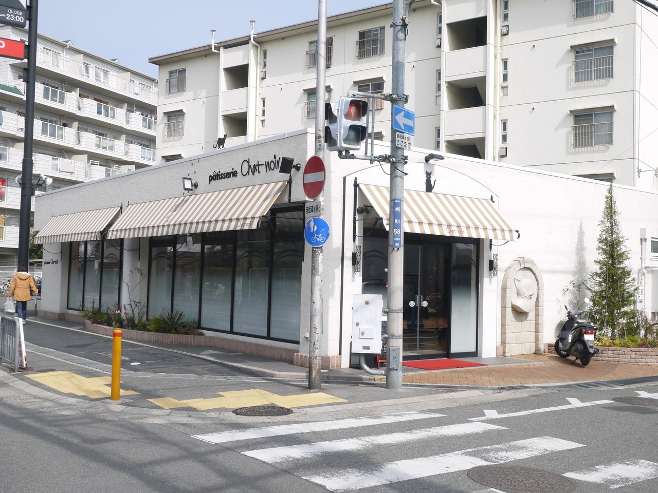 以前ここはコンビニのファミリーマートでしたが、現在はケーキ屋の「シャ・ノワール香里園店」になっています。黒い猫の看板が特徴的です。