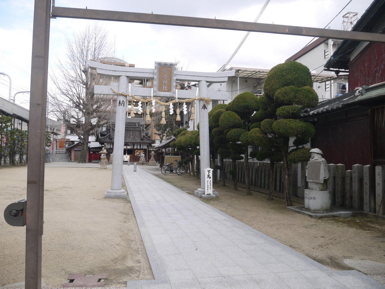 駅前の早子町から木田町に入って最初に見えるのが、住吉神社です。