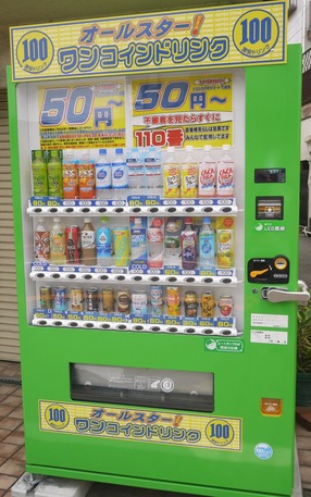萱島本町(寝屋川市南部)に50円から飲み物を買える格安自動販売機を発見しました。