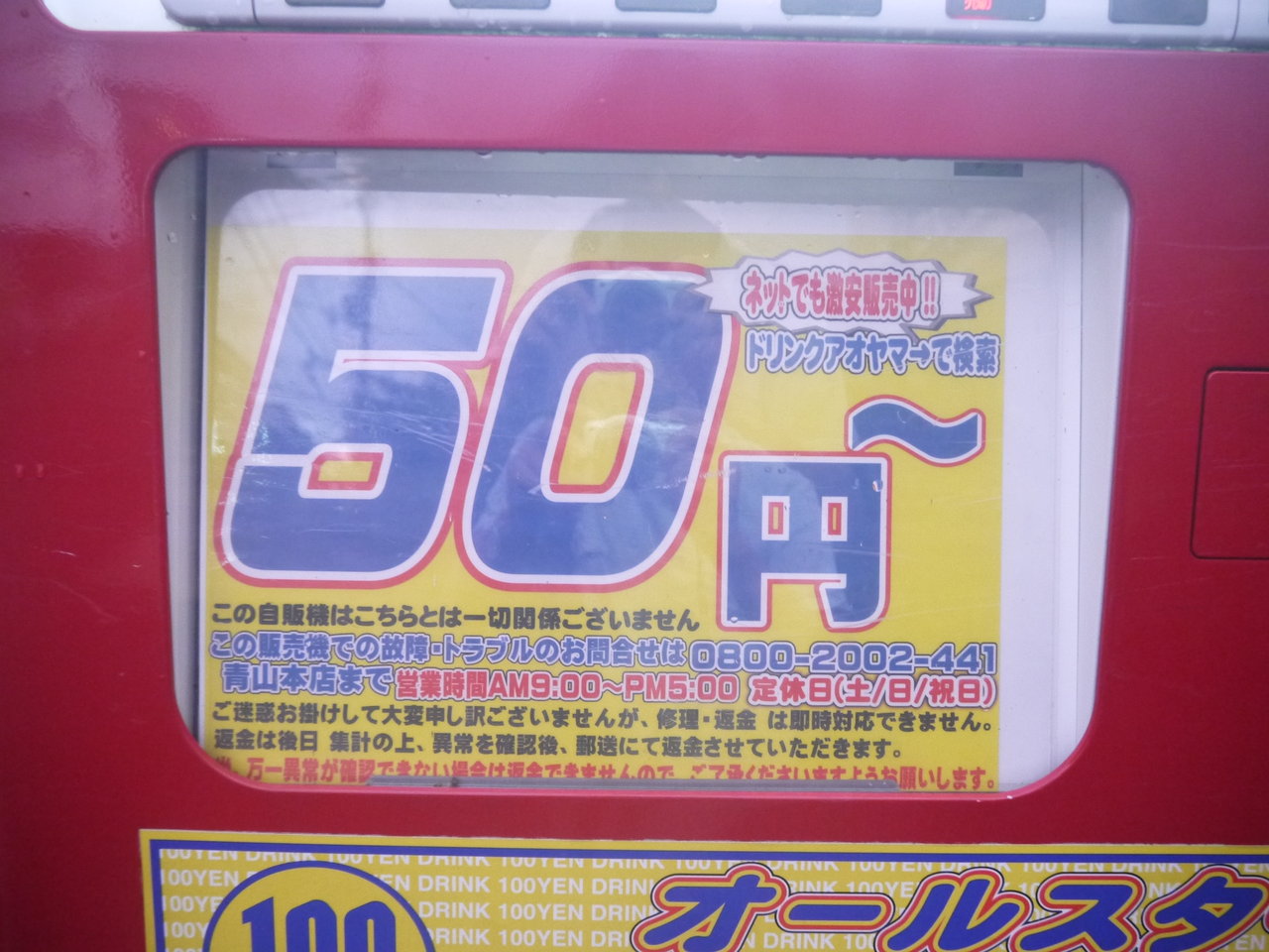 そんな中、下神田町(萱島方面)で50円から飲み物を買える格安自動販売機を発見しました!