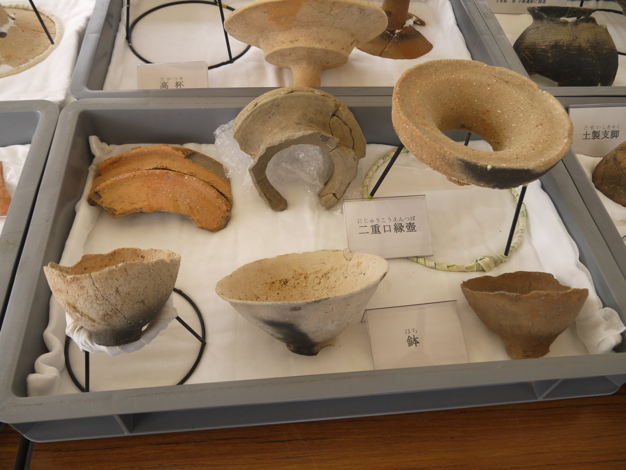 このままの状態で大量に出土したらしいのですが、吉備地方(岡山県南部)や東海地方で多く見つかっている土器のかけらも見つかり、これらの地域と交流があったことを伺わせるそうです。