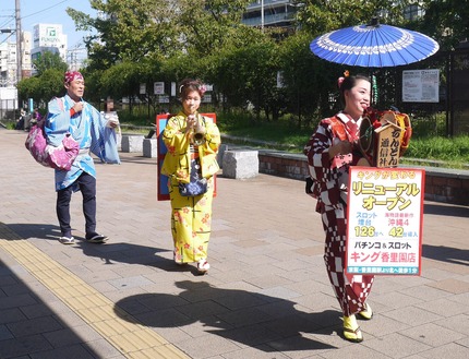 パチンコ店の宣伝活動として行っているらしく、人通りの多い駅前ということもあり、目立っていました。